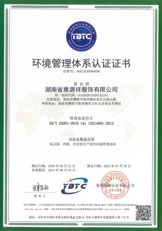 環(huán)境管理體系認(rèn)證證書(shū)